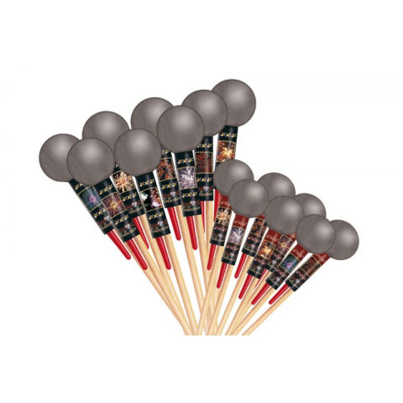 Spezialsortiment mit großen Kugelkopfraketen und unterschiedlichen schönen großen Effekten. 15 Raketen