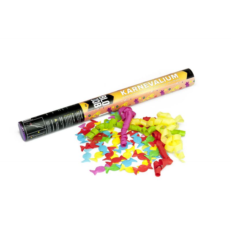 Bonbonkonfetti & Papierstreamer bunt Unerwünschte Nebenwirkungen wie Schläfrigkeit hat man bei diesem einzigartigen Shooter definitiv nicht zu befürchten. Er wirkt auch nicht ANGSTlösend, er wirkt AUSlösend! Einmal ausgelöst, bringt er Luftschlangen und Bonbon-Konfetti „up in the air“ und unter die Leute. Karnevalium hat also rein gar nichts mit Arznei zu tun, macht aber gute Laune! Fragen Sie Ihren Arzt oder Apotheker, keiner von beiden wird Ihnen erklären können, warum. Karneval oder Fasching ohne Bonbons? Undenkbar! Die Füllung ist schwer entflammbar gem. DIN 4102-1/B1 Kein Spielzeug und keine Pyrotechnik! Behälter schießt mit Druckluft. Abgabeempfehlung: 12 Jahre 1 Shooter