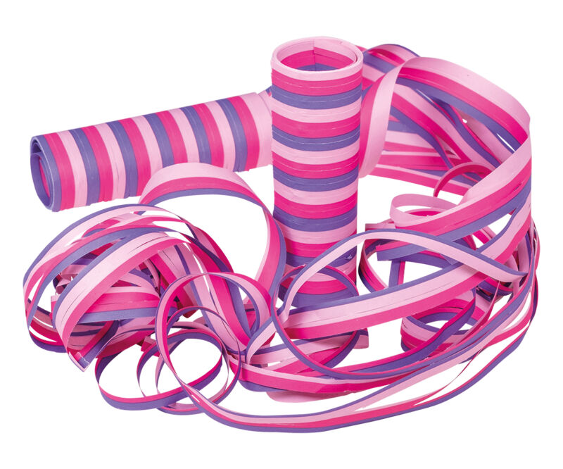 Rosa, pink und lila farbende Luftschlangen. 18er-Röllchen. 2 Rollen.