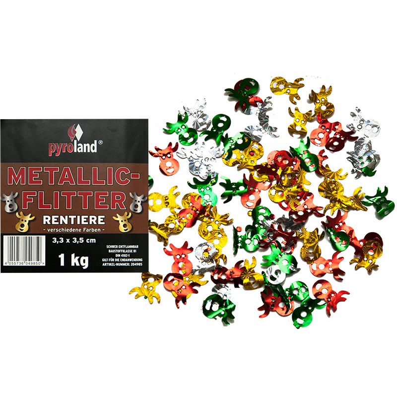 Metallic Flitter – Rentiere verschiedene Farben 1kg (Pappschachtel)