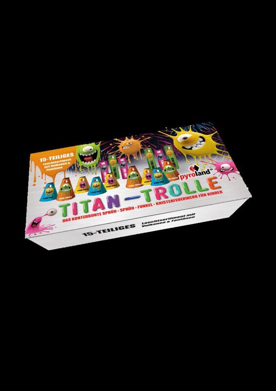 15-teiliges Leuchtsortiment mit Vulkanen & Fontänen. Das kunterbunte Sprüh-Sprüh-Funkel-Knisterfeuerwerk für Kinder