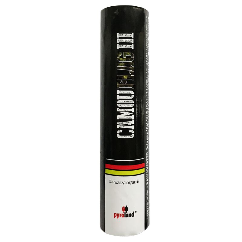 Feuerwerk 2025 ~ CamouFLAG III mit Reißzünder 90s, Schwarz zu Rot zu Gelb online bestellen